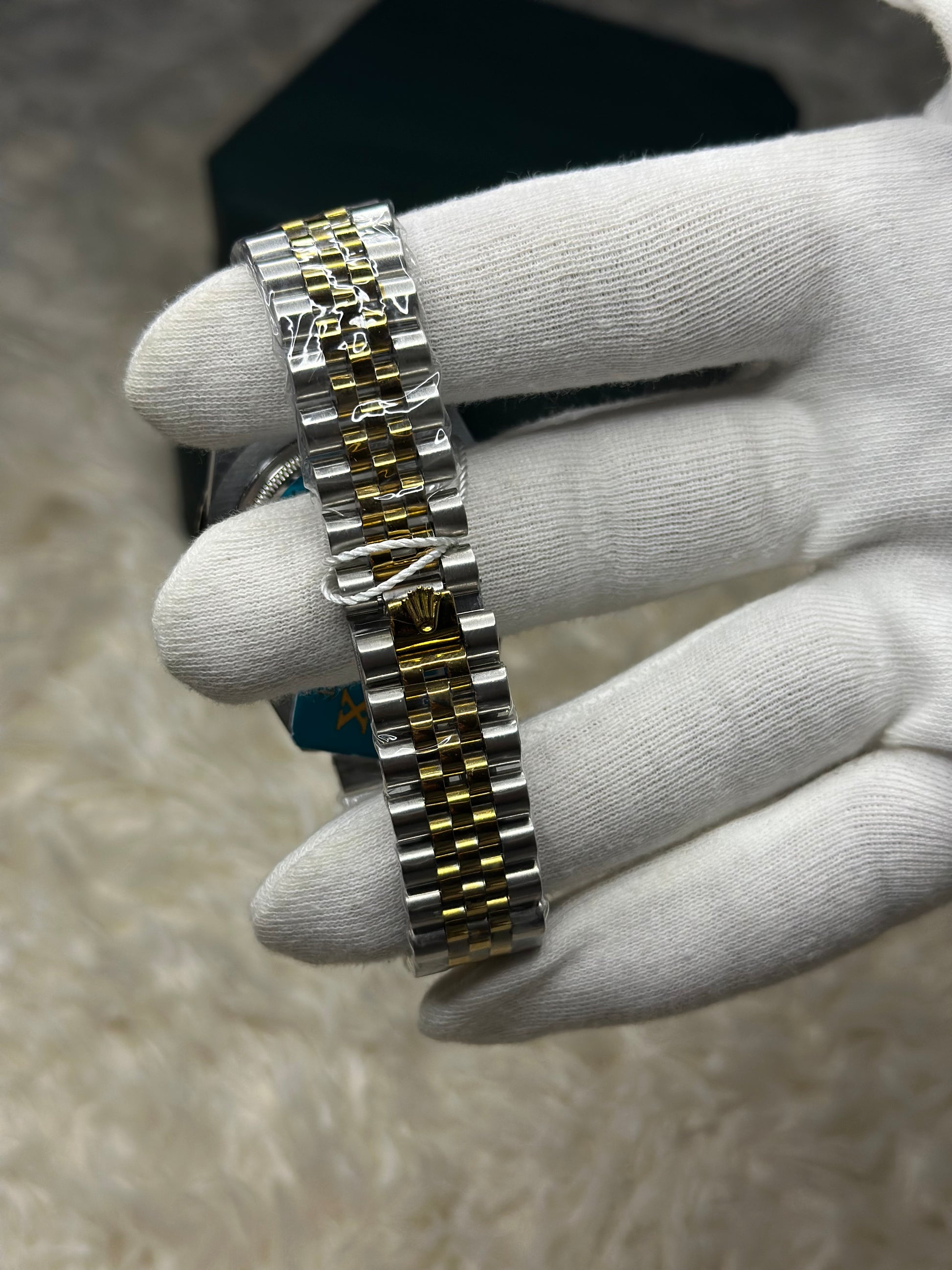This premium luxury GMT watch features a striking black dial paired with a gold-accented 24-hour bezel, offering both style and functionality. Crafted with a high-quality two-tone stainless steel bracelet, it delivers a refined and elegant appearance suitable for business, formal events, or daily wear. The luminous hour markers and hands ensure excellent visibility in low light, while the date window with cyclops magnifier adds practical convenience. Built for durability and precision, this timepiece reflects classic design with a modern touch—an ideal choice for watch enthusiasts and those seeking a statement accessory.