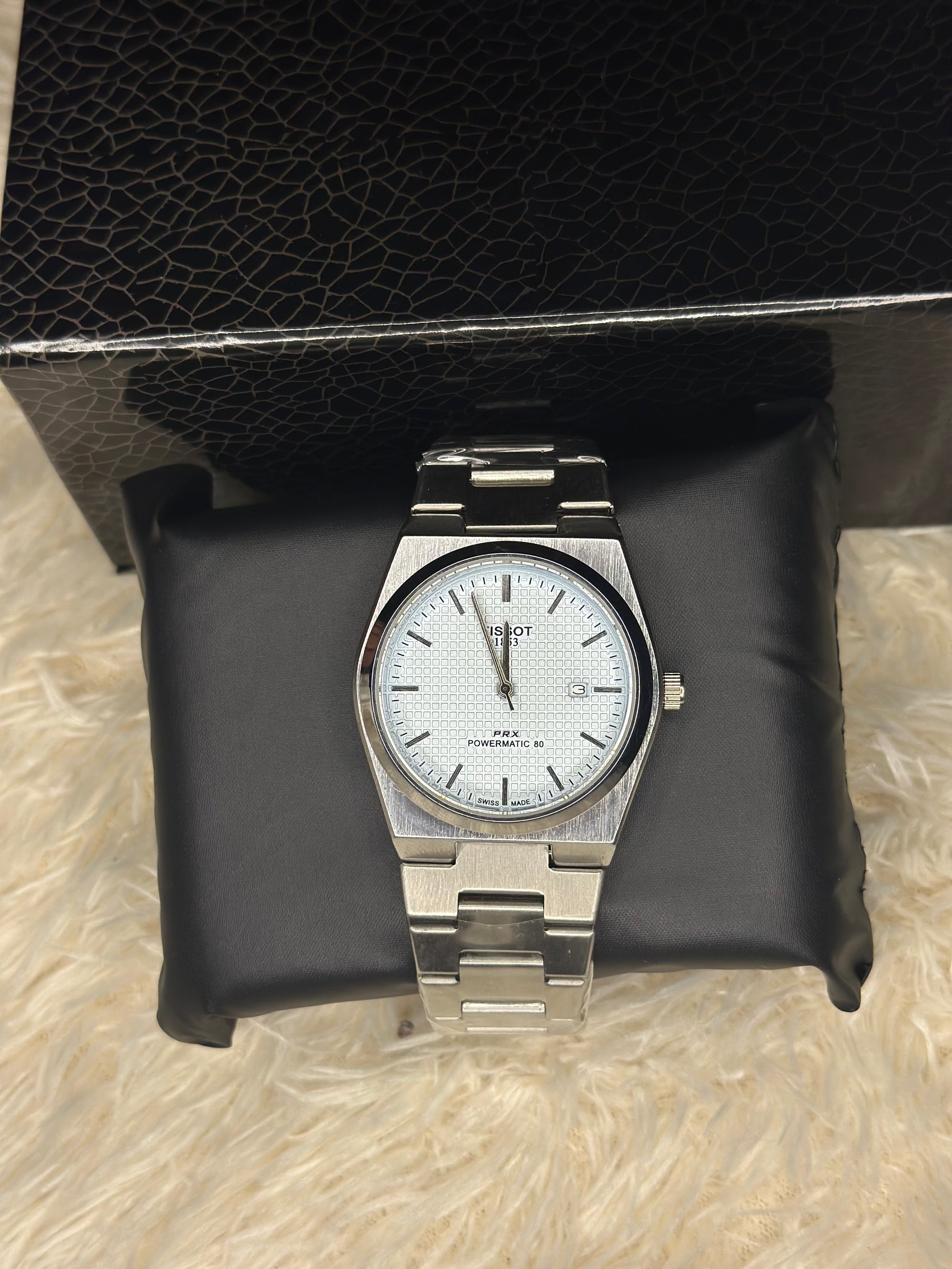 The Ultimate Modern Classic. The Tissot PRX is a stunning tribute to 1970s style, featuring a sleek integrated bracelet and a sophisticated silver "waffle" dial. Precision-engineered for the modern man, it combines Swiss luxury with everyday durability.